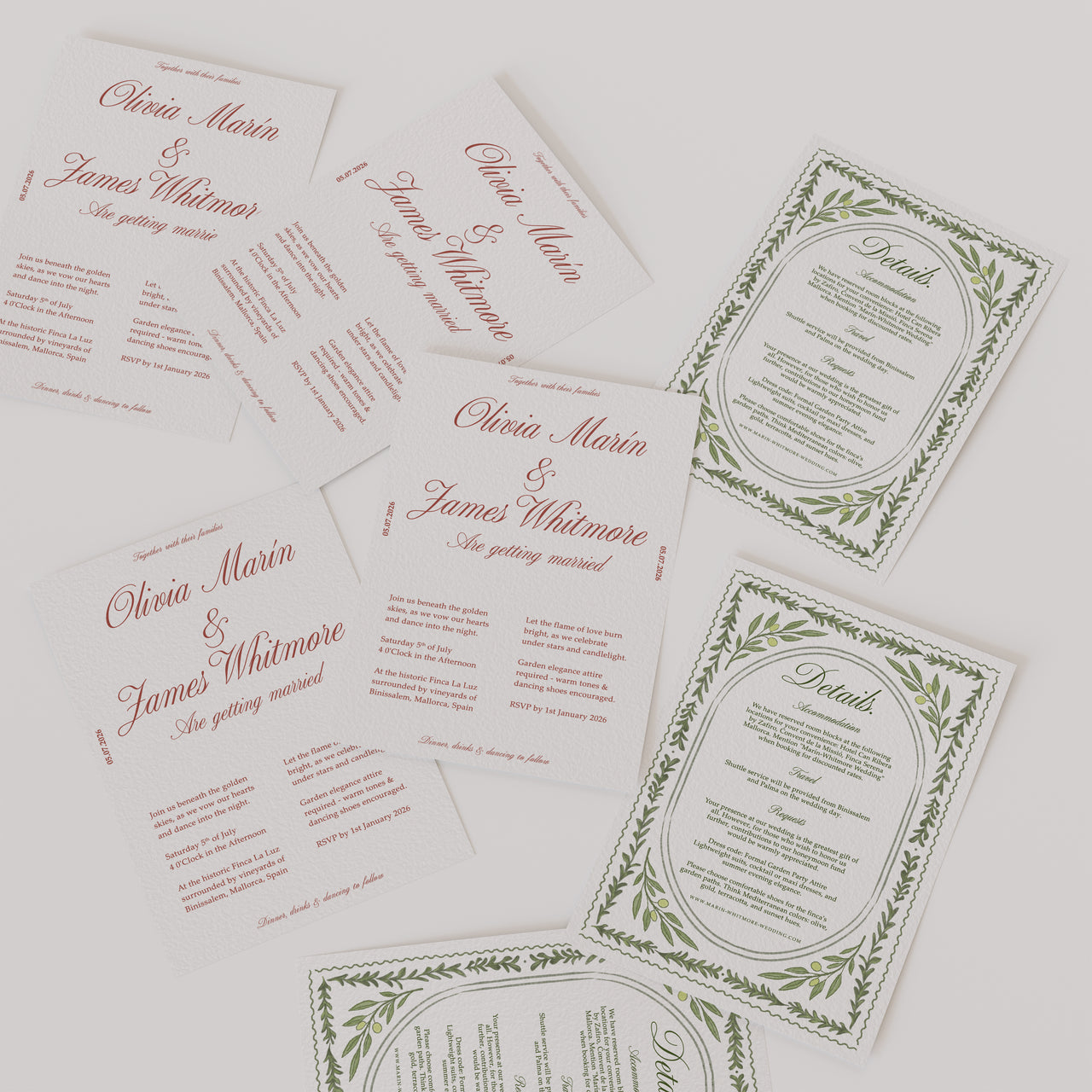 Add a hand-drawn sketch of your wedding venue to your stationery - a timeless keepsake your guests will never forget. We also offer fully bespoke design services for couples wanting a suite as unique as their story.